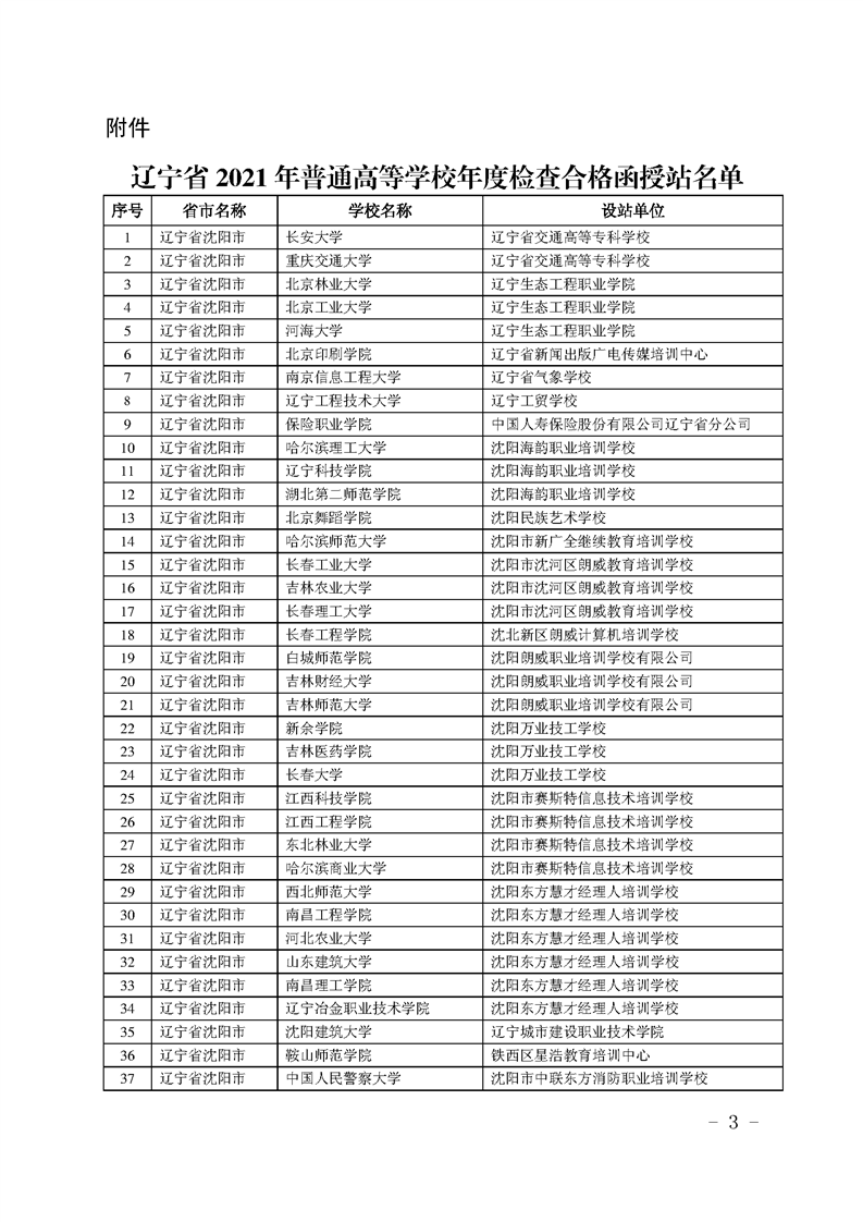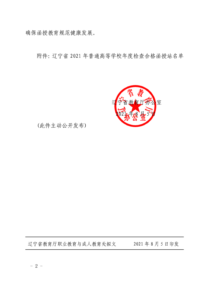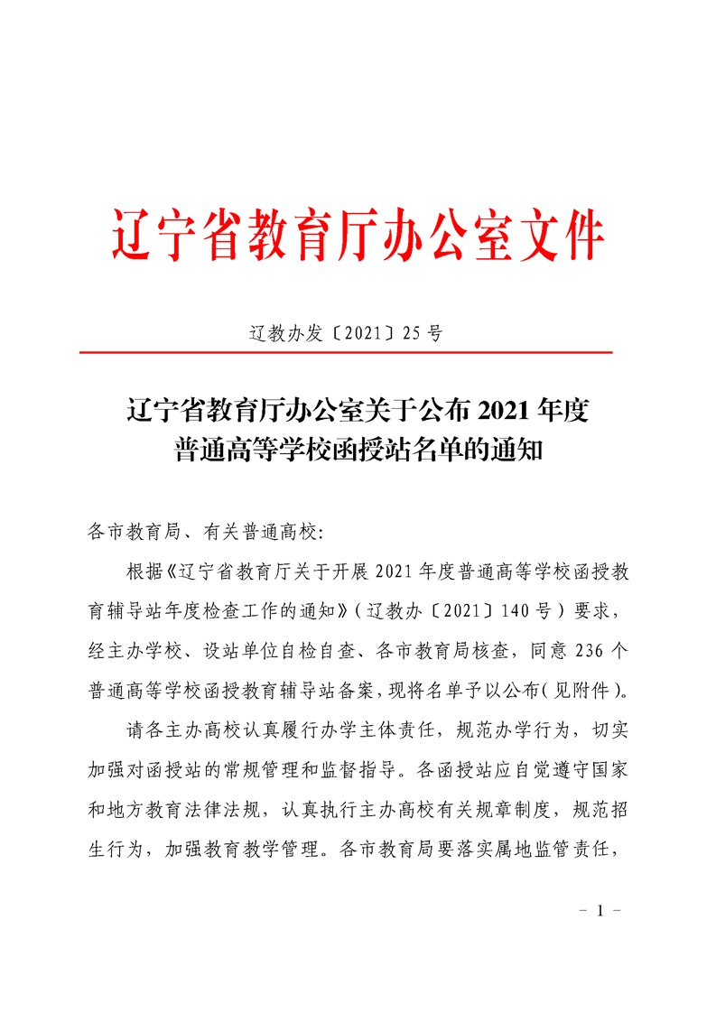 遼寧省教育廳辦公室關(guān)于公布2021年度普通高等學(xué)校函授站名單的通知