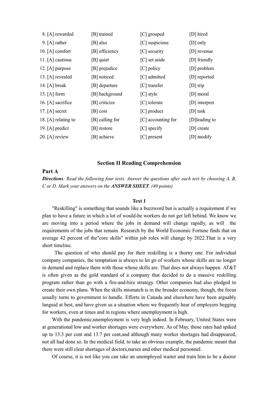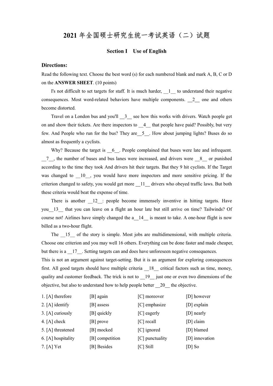 2021年管理類英語